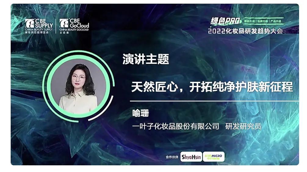 近日,CBE(中國(guó)美容博覽會(huì))線上科技節(jié)正式開(kāi)幕。上美集團(tuán)一葉子科研代表受邀參與「綠色PRO 2022化妝品研發(fā)趨勢(shì)大會(huì)」,向行業(yè)解讀純凈美容規(guī)范標(biāo)準(zhǔn),分享一葉子轉(zhuǎn)型升級(jí)成果。
