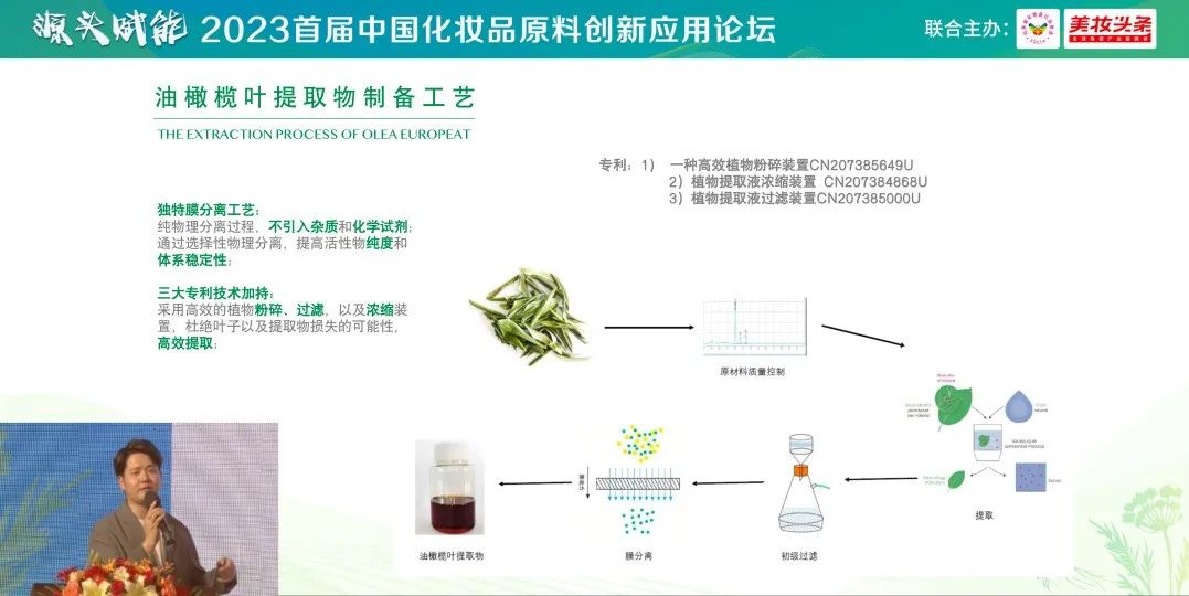 3) 創(chuàng)新制備工藝,確保提取純度、穩(wěn)定性和高效性:一葉子在油橄欖葉提取物的制備過程中,采用獨(dú)特膜分離工藝,通過選擇性純物理分離,不引入雜質(zhì)和化學(xué)試劑,提高活性物純度和體系穩(wěn)定性,并加持三大專利技術(shù),采用植物粉碎、過濾、以及濃縮裝置,減少油橄欖葉以及提取物的損耗,讓提取更加高效。
