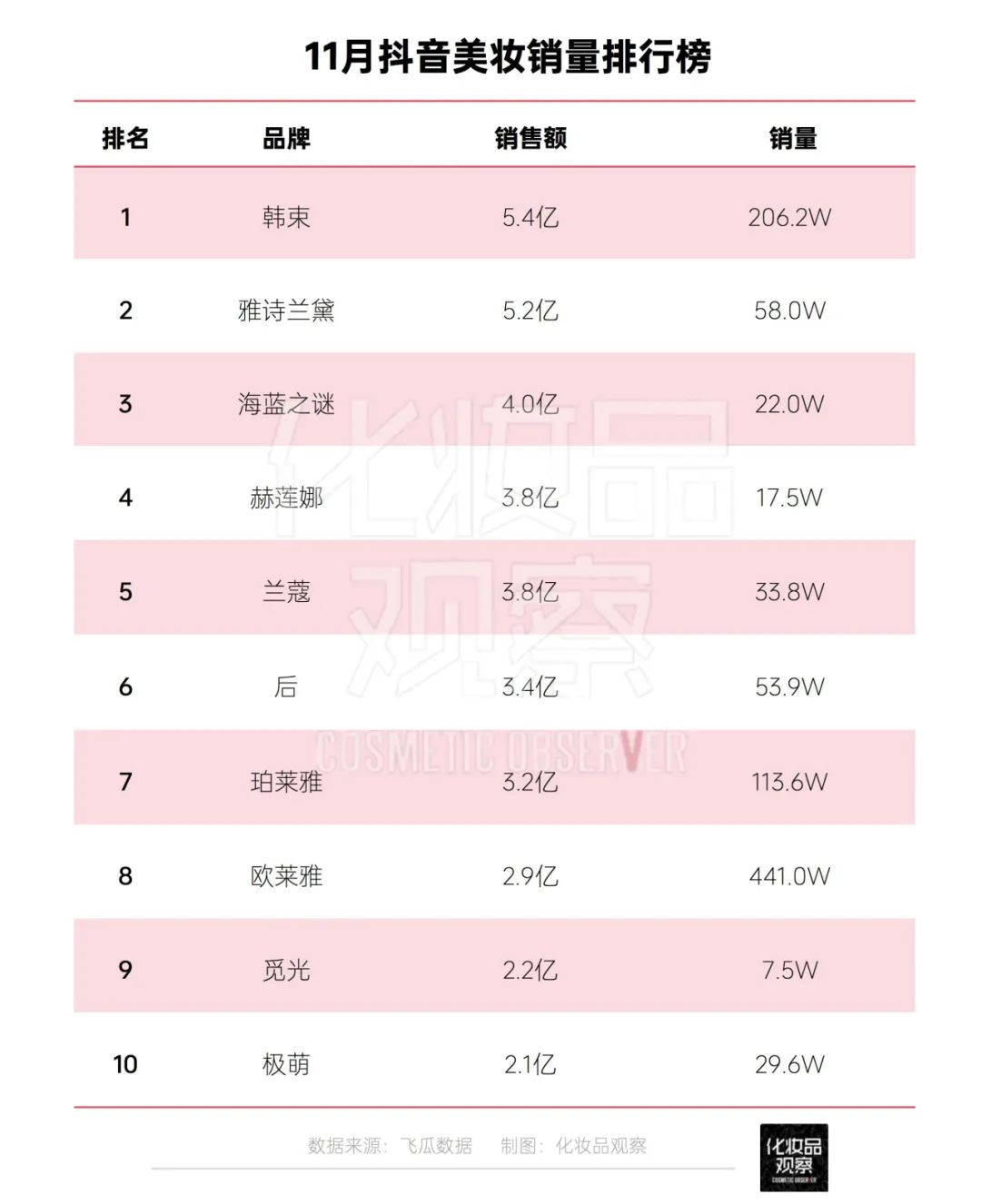 高品質(zhì)產(chǎn)品也收獲了市場的正向反饋,據(jù)飛瓜數(shù)據(jù),韓束獲得11月抖音美妝品牌總榜TOP1,銷售額達(dá)5.4億元。同時(shí),在2023年1-11月,韓束抖音累計(jì)GMV也位居美妝品類第一,累計(jì)銷量額達(dá)28.5億元。