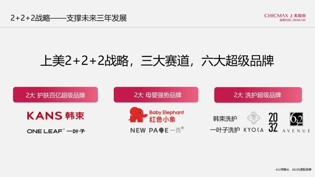 呂義雄表示,面向未來三年,上美股份將遵循“2+2+2 戰(zhàn)略”,即由2大護(hù)膚百億超級品牌、2大母嬰強(qiáng)勢品牌,以及2大洗護(hù)超級品牌,共同擴(kuò)大上美在多品類、多賽道、多價(jià)格帶、多受眾人群的影響力,全面提升集團(tuán)業(yè)績及企業(yè)價(jià)值。