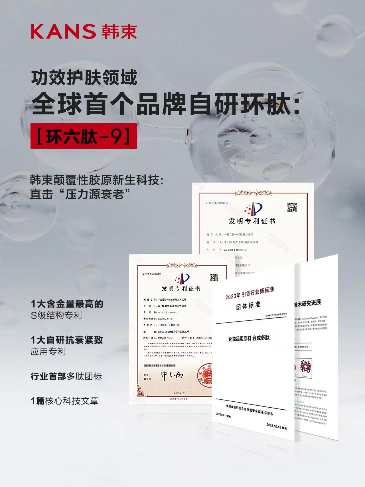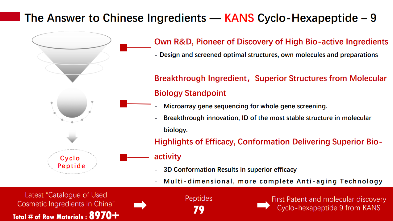 環(huán)六肽-9是中國自主科研的一大重要成果。它的誕生不僅打破了國際原料商的壟斷,為中國抗衰成分樹立了新的國際形象,也向世界詮釋根植中國、自主原創(chuàng)、擁有獨(dú)家專利或技術(shù)壁壘的「中國成分」新內(nèi)涵。