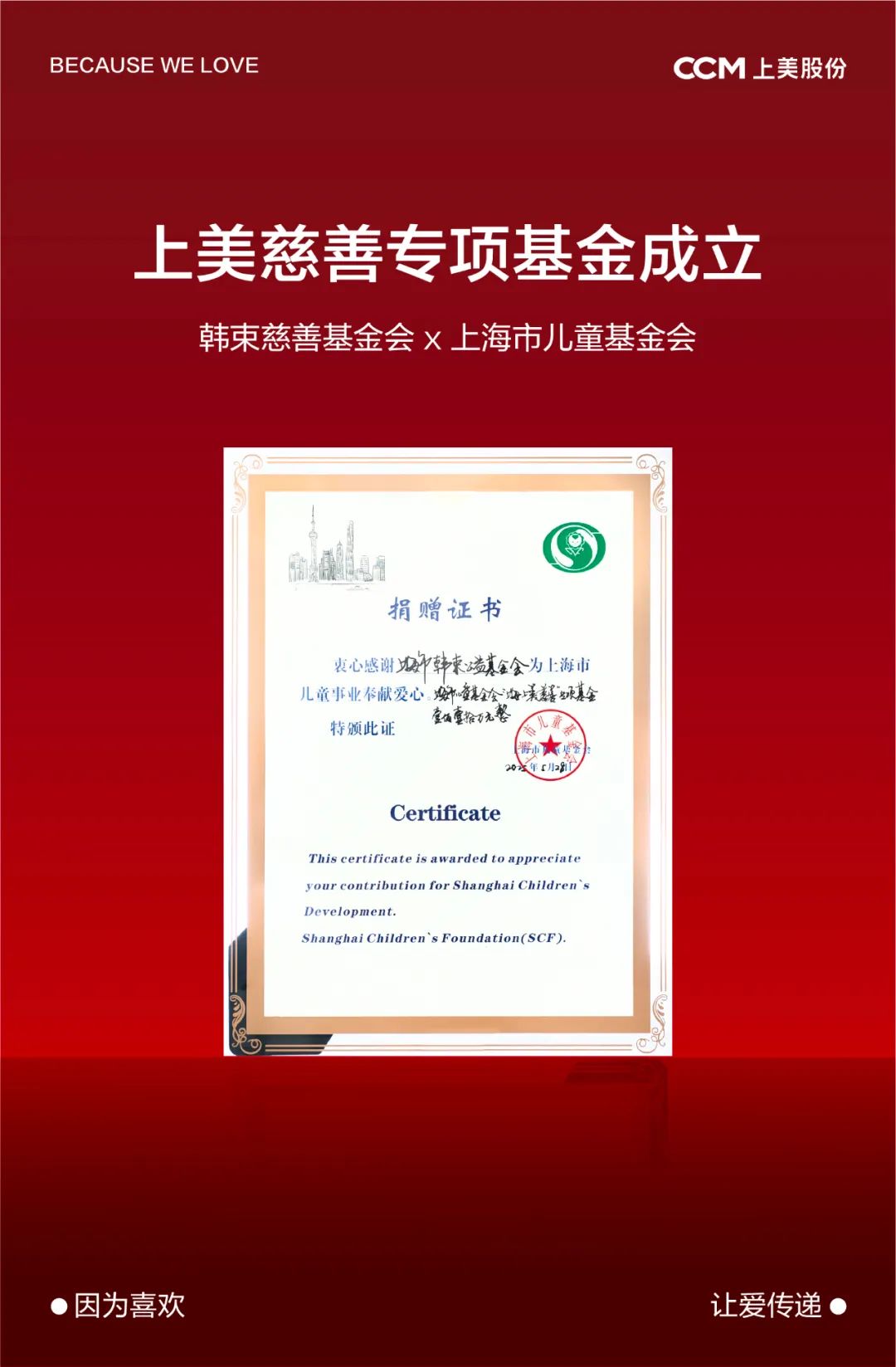 活動(dòng)現(xiàn)場(chǎng),上海市韓束公益基金會(huì)(以下簡(jiǎn)稱“韓束基金會(huì)”)與上海市兒童基金會(huì)宣布達(dá)成深度合作,正式成立 “上美慈善專項(xiàng)基金”。