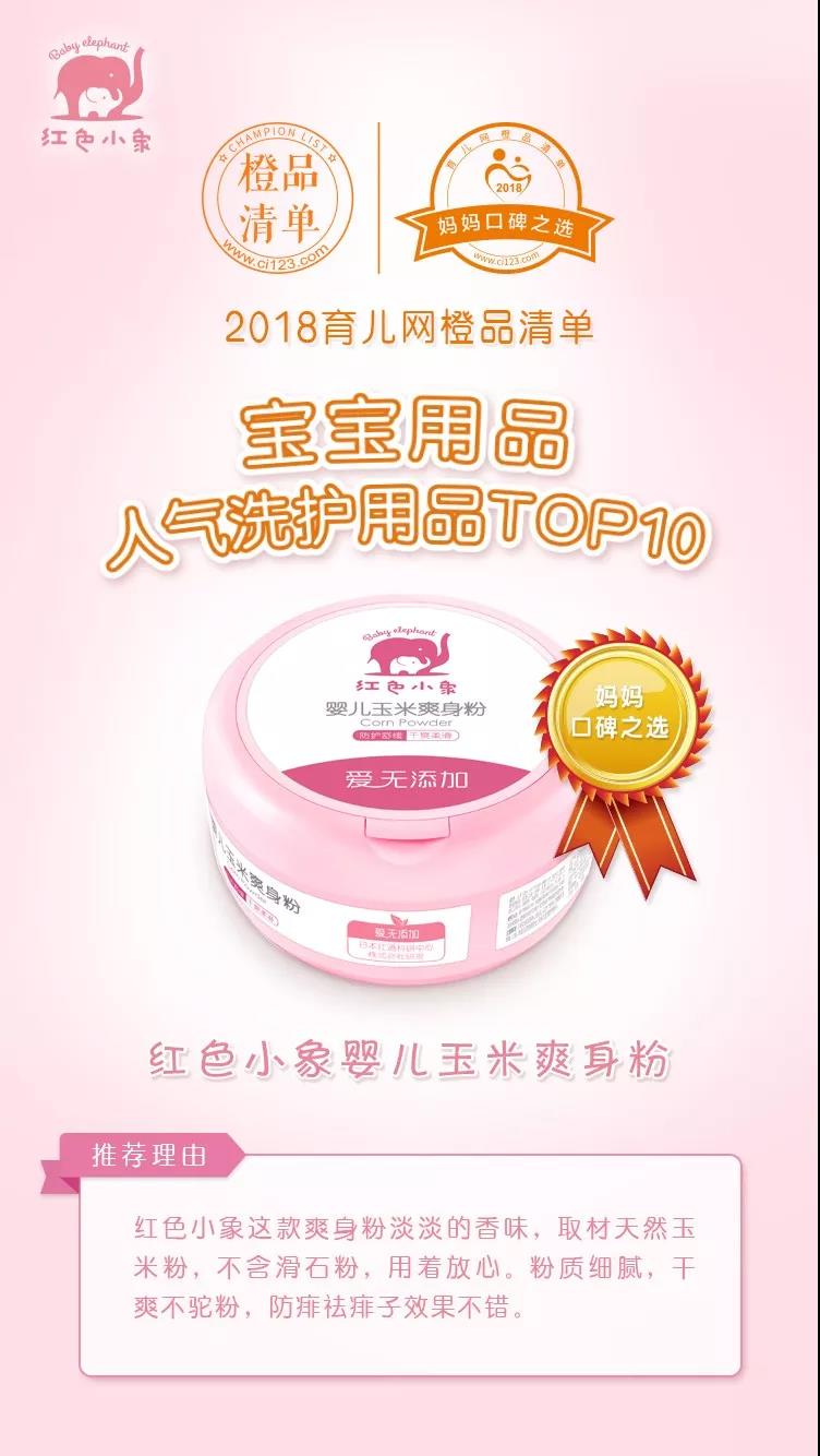 紅色小象嬰兒玉米爽身粉獲“寶寶用品·人氣洗護用品TOP10