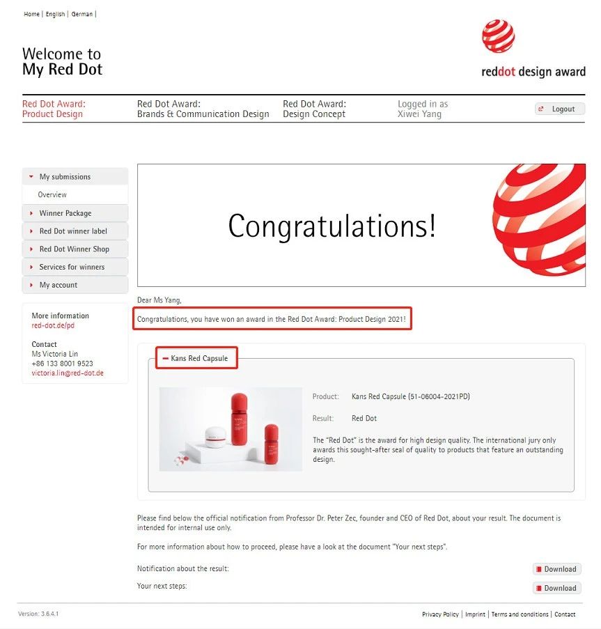 歷年來,全球各大品牌爭相角逐,以獲得該獎為最高設計榮譽,資生堂、POLA、美寶蓮等國際大牌都曾是“紅點設計大獎”的座上賓。