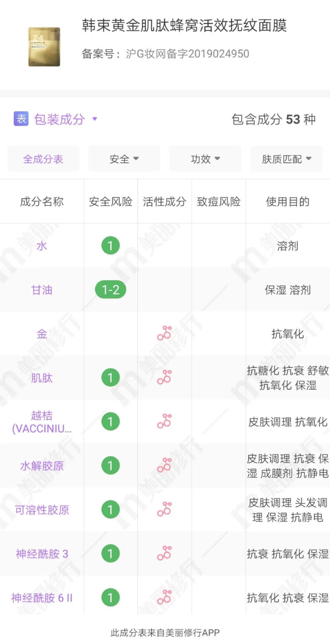 金剛俠主打“真金賦能,無懼初老”,含有多種有效成分,備受“成分黨”喜愛:
